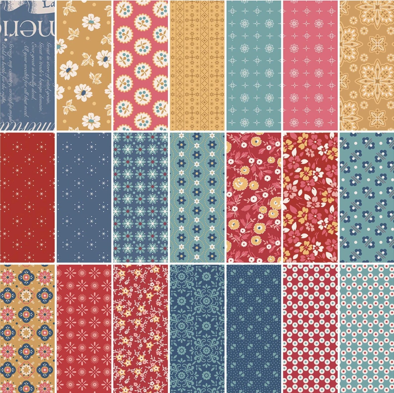 Americana 1-Yard Denim Bundle by Lori Holt features 21 prints from the Americana line.