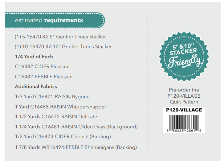 1 7/8 yards backing of a 108" is not included. Gentler Times wide back WB16492 Cider can be purchased separately.