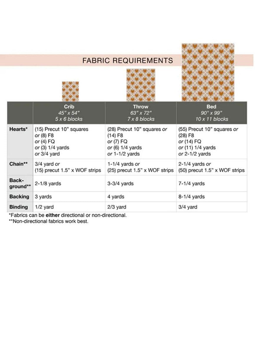The Heirloom Hearts Quilt by Lo & Behold Stitchery is the perfect blend of modern and traditional quilting. This pattern uses strip piecing and a "stitch and flip" technique to create the perfect wedding, Valentine's or anniversary gift. Choose from three sizes and use either precuts, yardage or scraps. It includes helpful diagrams, thorough instructions, alternate color-way ideas and a coloring page to plan your quilt. Pattern includes instructions for Crib (45" x 54"), Throw (63" x 72"), and Bed (90" x 99") sizes.