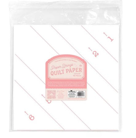 The 10" Paper Strings Quilt Paper by Lori Holt of Bee in my Bonnet is iron-on paper that helps you iron and then cut 10" stackers at unique angles to reassemble 7" scrappy string blocks. Each package includes 42 sheets.