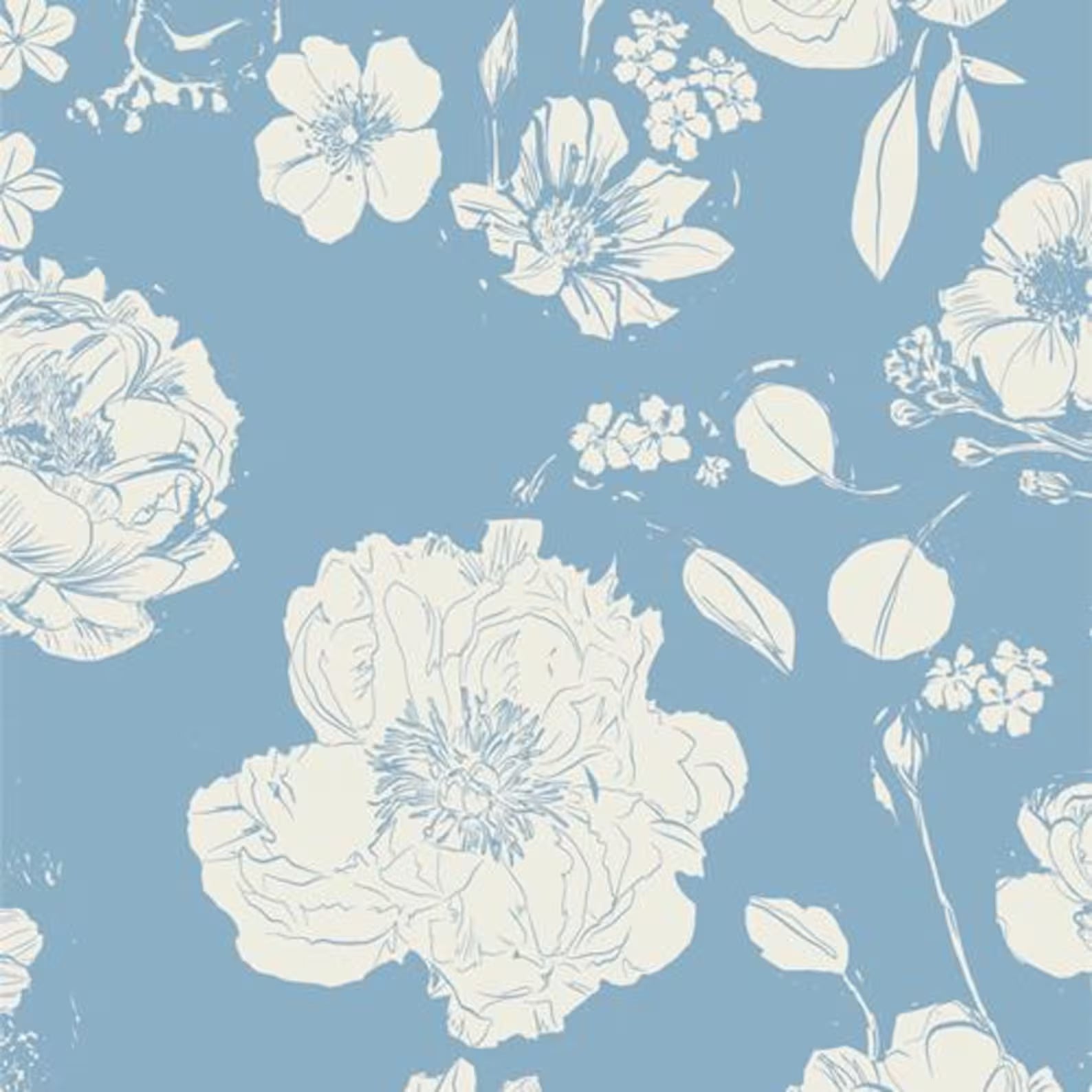 Beautiful porcelain flowers on the blue back ground. 108" wide back great for backings, apparel and other home décor projects. Part of the Potager Fabric Collection. Designed by Sharon Holland for AGF